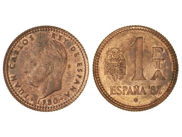 1 Peseta. 1980 (* 81). ERROR: acuñada en cospel de cobre. Pátina. JBM-41.3.2c. SC.