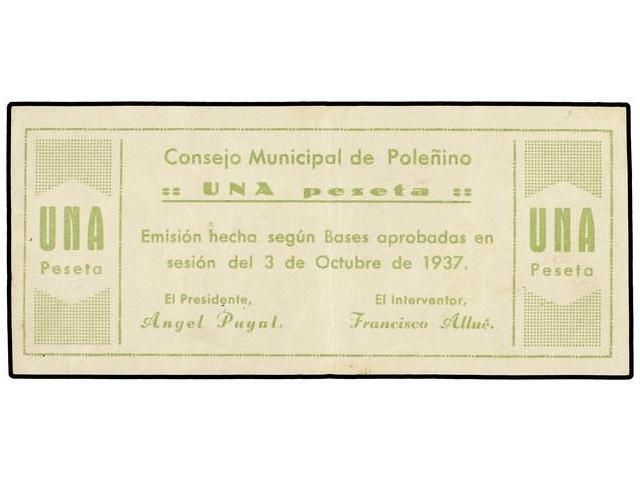 1 Peseta. 3 Octubre 1937. C.M. de POLEÑINO (Huesca). Mont-1148C. MBC+.