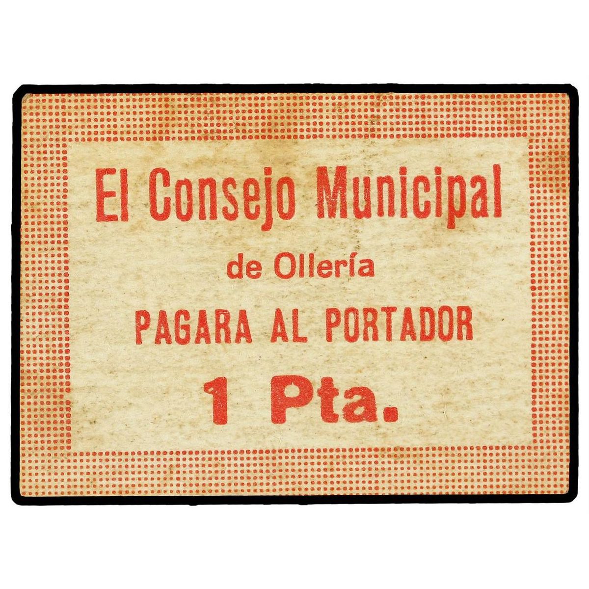 1 Peseta. - C.M. de OLLERIA (Valencia). - Cartón. (Algo sucio). MUY RARO. T-1036. MBC+. - -