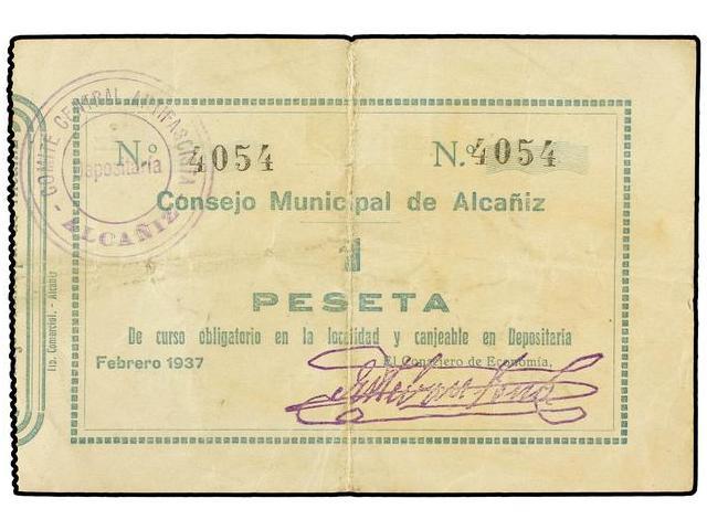 1 Peseta. Febrero 1937. C.M. de ALCAÑIZ. (Teruel). MBC.