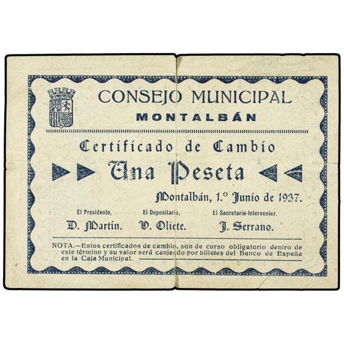 1 Peseta. - Junio 1937. - C.M. de MONTALBÁN (Teruel). - (Roturas). Mont-941B. (MBC). - -