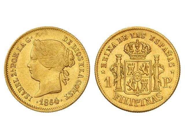 1 Peso. 1864. MANILA. Cal-146. MBC-/MBC+.