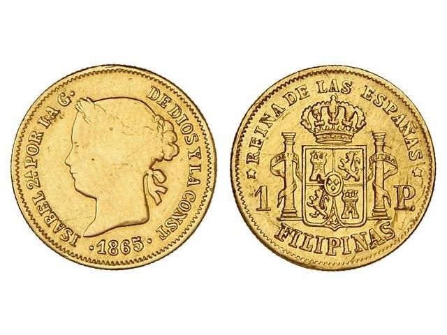 1 Peso. 1865. MANILA. (Descolgada. Rayas). Cal-147. MBC-/MBC.