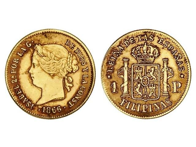 1 Peso. 1866. MANILA. Pátina. (Leves golpecitos en anverso). ESCASA. Cal-148. MBC+.