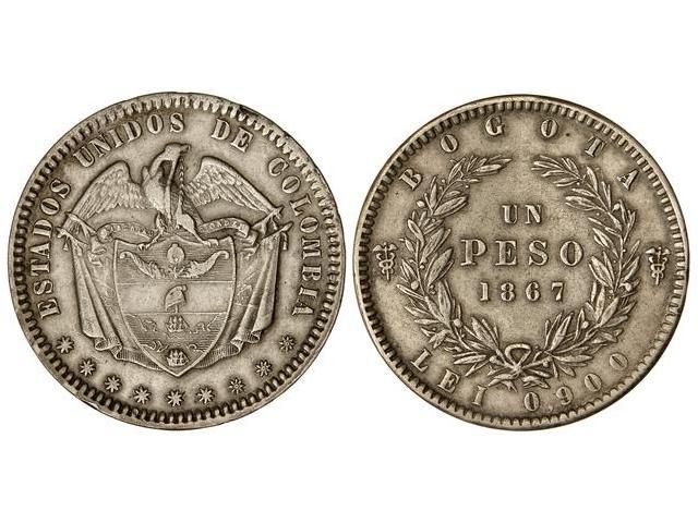 1 Peso. 1867. BOGOTÁ. AR. KM-139.1. MBC+.