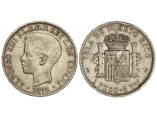 1 Peso. - 1895. - PUERTO RICO. - P.G.-V. - (Golpecitos). MBC-/MBC. - -