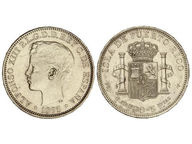 1 Peso. - 1895. - PUERTO RICO. - P.G.-V. - (Rayitas). EBC. - -