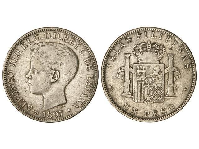 1 Peso. 1897. MANILA. (Golpecitos y rayitas). MBC-.