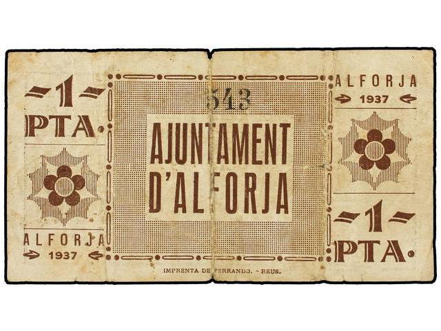 1 Pesseta. 1 Abril 1937. Aj. d´ALFORJA. (Pequeñas roturas). RARO. AT-105; T-133. MBC-.