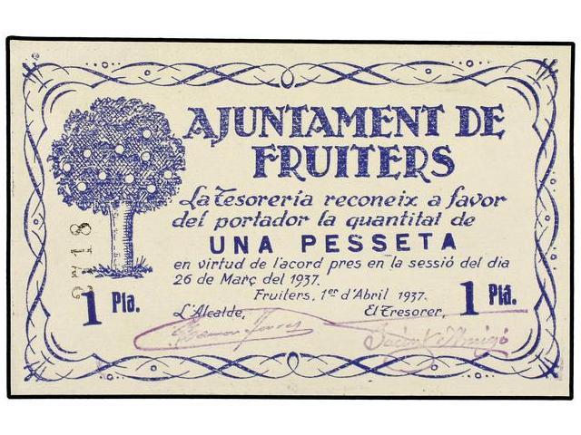1 Pesseta. 1 Abril 1937. Aj. de FRUITERS. (Restos adhesivo en reverso). AT-1062b; T-1233b. SC.