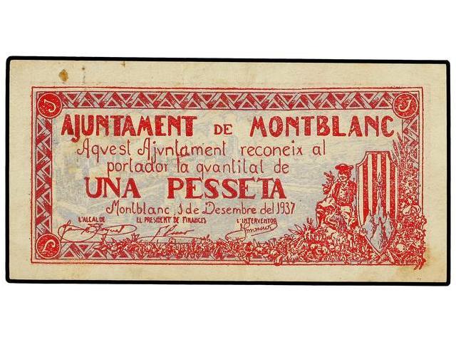 1 Pesseta. 1 Desembre 1937. Aj. de MONTBLANC. (Señal óxido de clip al reverso). AT-1544 ; T-1772. EBC-.
