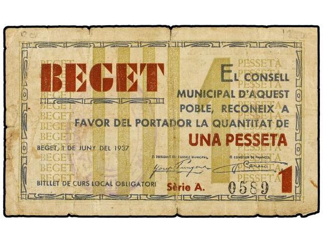 1 Pesseta. - 1 Juny 1937. - BEGET. - (Roturas). RARO. AT-332; T-397. MBC-. - -