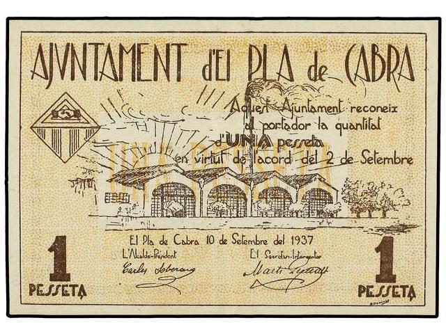 1 Pesseta. 10 Setembre 1937. Aj. d´EL PLA DE CABRA. ESCASO. AT-1847; T-2137. EBC.