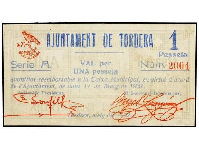 1 Pesseta. 11 Maig 1937. Aj. de TORDERA. ESCASO. AT-2508. EBC-.