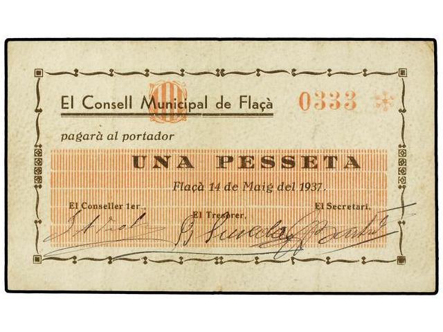 1 Pesseta. - 14 Maig 1937. - C.M. de FLAÇÀ. - ESCASO. AT-1014; T-1184. MBC. - -