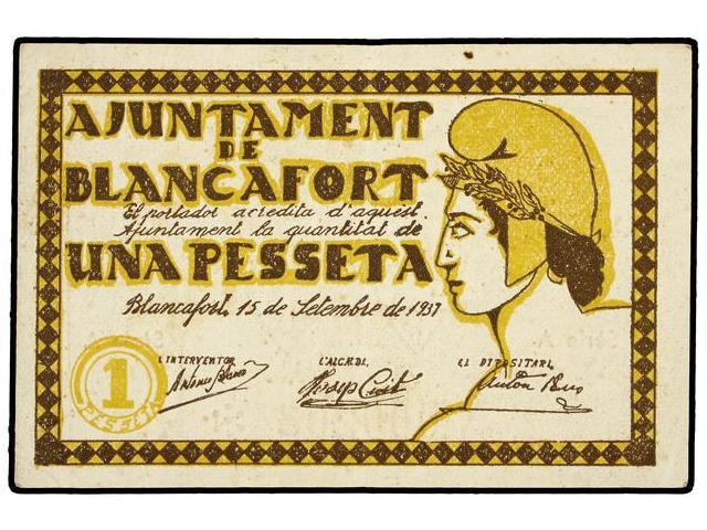1 Pesseta. 15 Setembre 1937. Aj. de BLANCAFORT. MUY ESCASO. AT-461; T-547. MBC+.