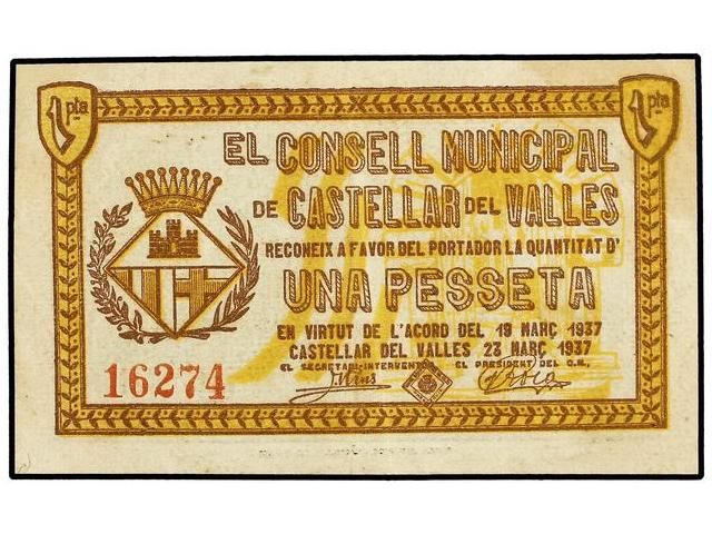 1 Pesseta. 19 Març 1937. C.M. de CASTELLAR DEL VALLÈS. AT-691. EBC.