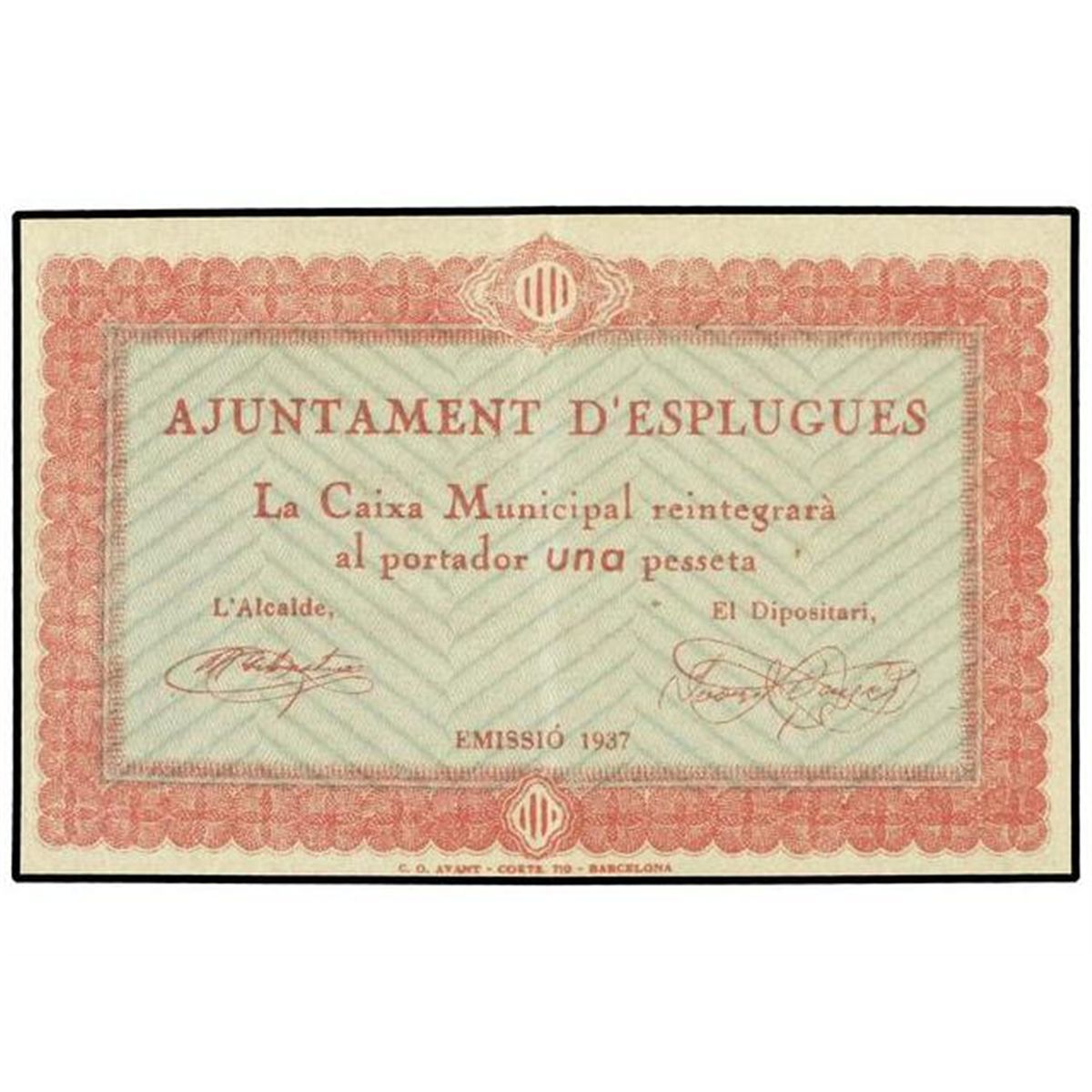 1 Pesseta. - 1937. - Aj. d´ ESPLUGUES. - AT-958; T-1100. EBC-. - -