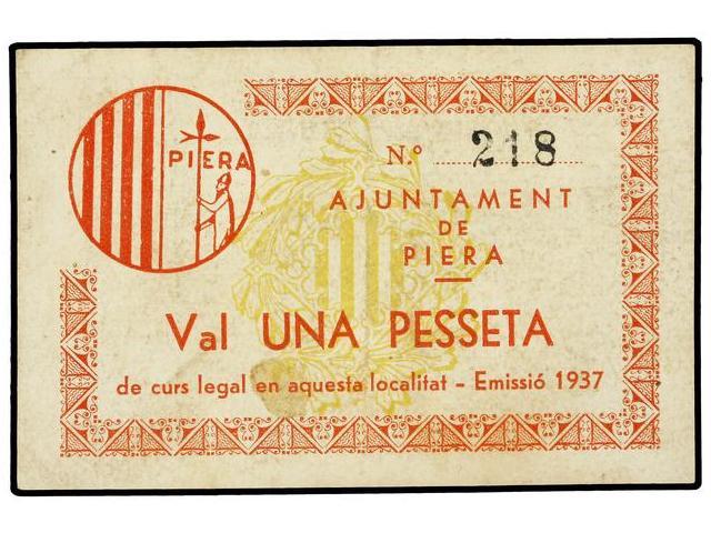 1 Pesseta. 1937. Aj. de PIERA. Anv.: Escudo en verde oliva. ESCASO. AT-1819a; T-2103. EBC-.