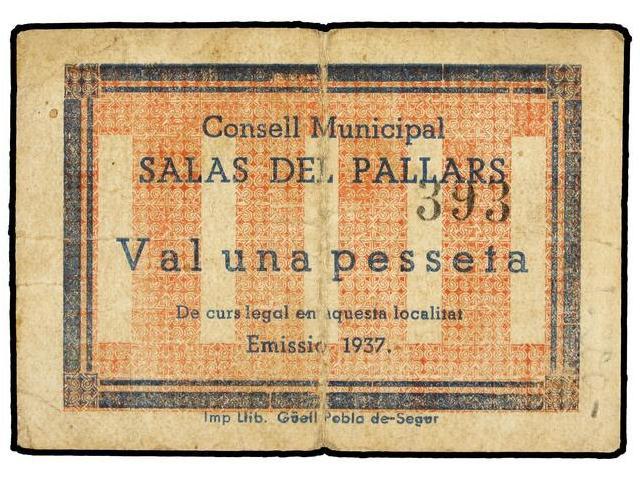 1 Pesseta. - 1937. - C.M. de SALAS DEL PALLARS. - (Algo sucio). RARO. AT-2251, T-2589. MBC-. - -