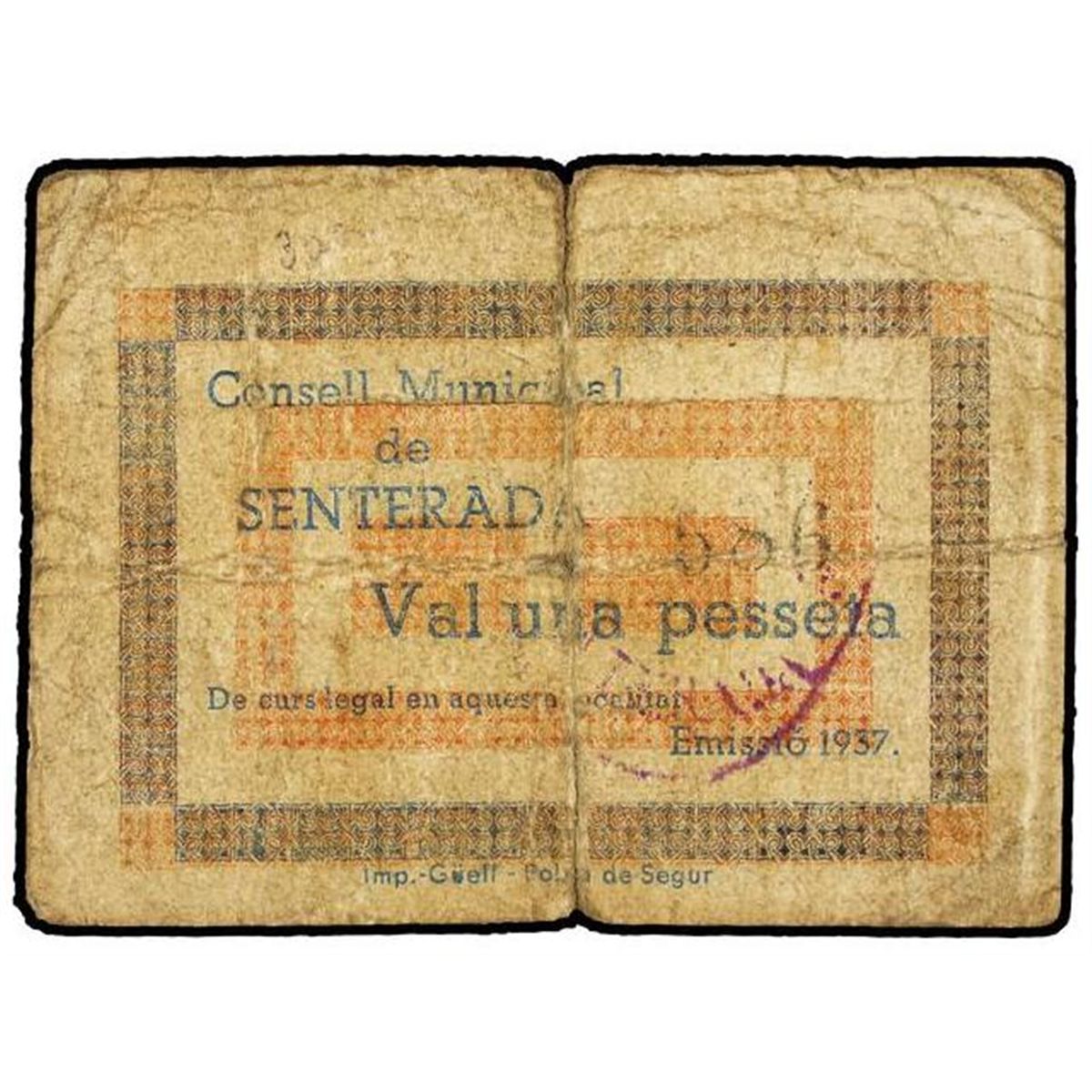 1 Pesseta. - 1937. - C.M. de SENTERADA. - (Sucio). RARO. AT-2333; T-2701. RC. - -