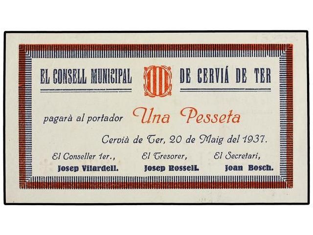 1 Pesseta. 20 Maig 1937. C.M. de CERVIÀ DE TER. RARO. AT-818c. SC.