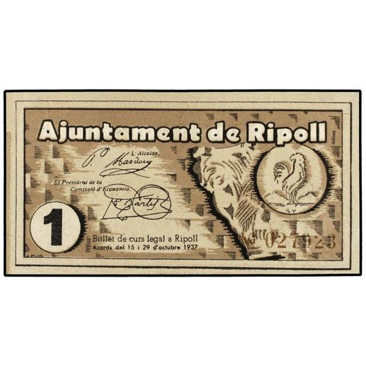 1 Pesseta. - 20 Octubre 1937. - Aj. de RIPOLL. - AT-2133; T-2464. SC. - -