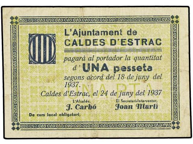 1 Pesseta. 24 Juny 1937. Aj. de CALDES D´ESTRAC. AT-591; T-690. MBC+.