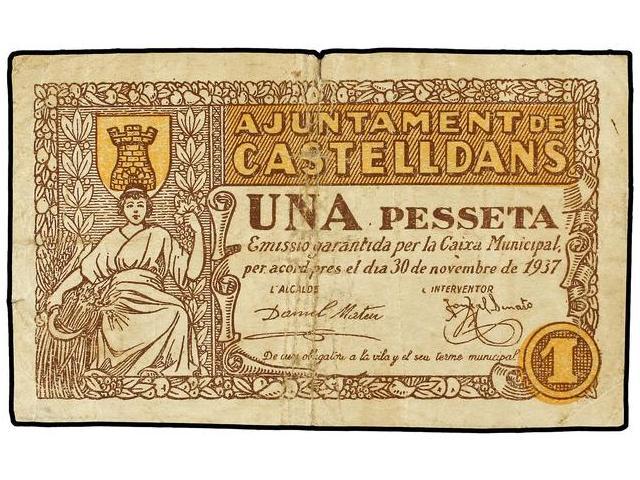 1 Pesseta. - 30 Novembre 1937. - Aj. de CASTELLDANS. - (Algo sucio). AT-711; T-836. MBC-. - -