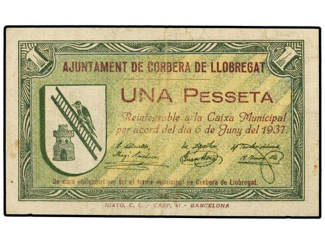 1 Pesseta. 6 Juny 1937. Aj. de CORBERA DE LLOBREGAT. AT-871; T-1009. MBC+.