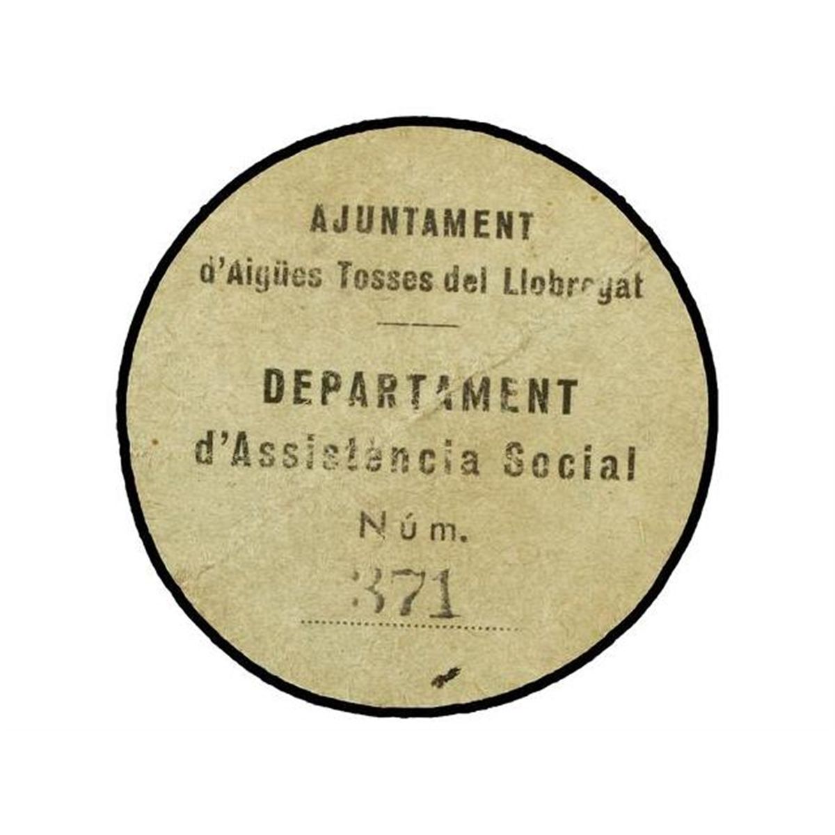 1 Pesseta. - Aj. d´AIGÜES TOSSES DEL LLOBREGAT. - Cartón redondo. RARO. AT-37; T-52. MBC. - -