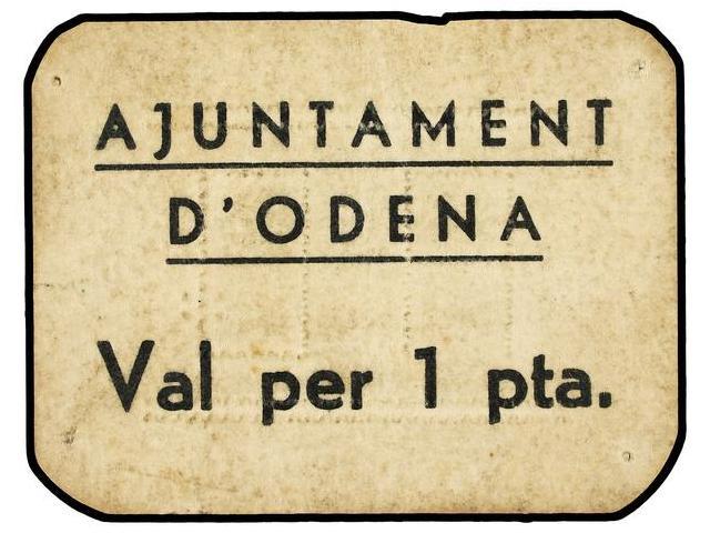 1 Pesseta. Aj. d´ODENA. Cartón. (Algo sucio). ESCASO. AT-1669; T-1918. MBC+.