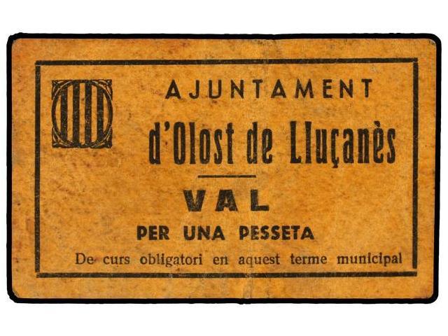 1 Pesseta. Aj. d´OLOST DE LLUÇANÈS. Cartón. ESCASO. AT-1695; T-1944. MBC+.