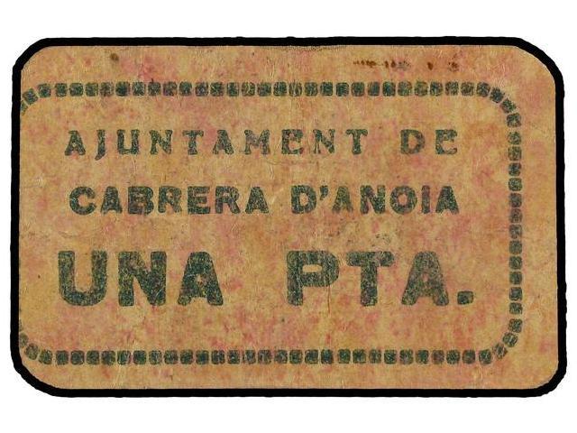 1 Pesseta. - Aj. de CABRERA D´ANOIA. - Cartón. Numeración sin asterisco. RARO. AT-554; T-653. EBC. - -