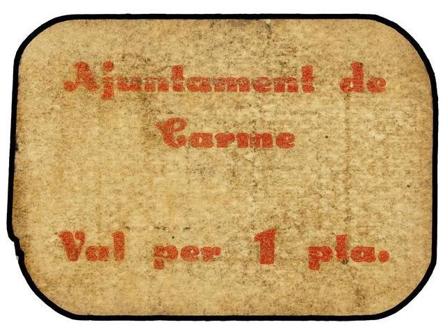 1 Pesseta. Aj. de CARME. Cartón. (Sucio). AT-680; T-799. (MBC+).