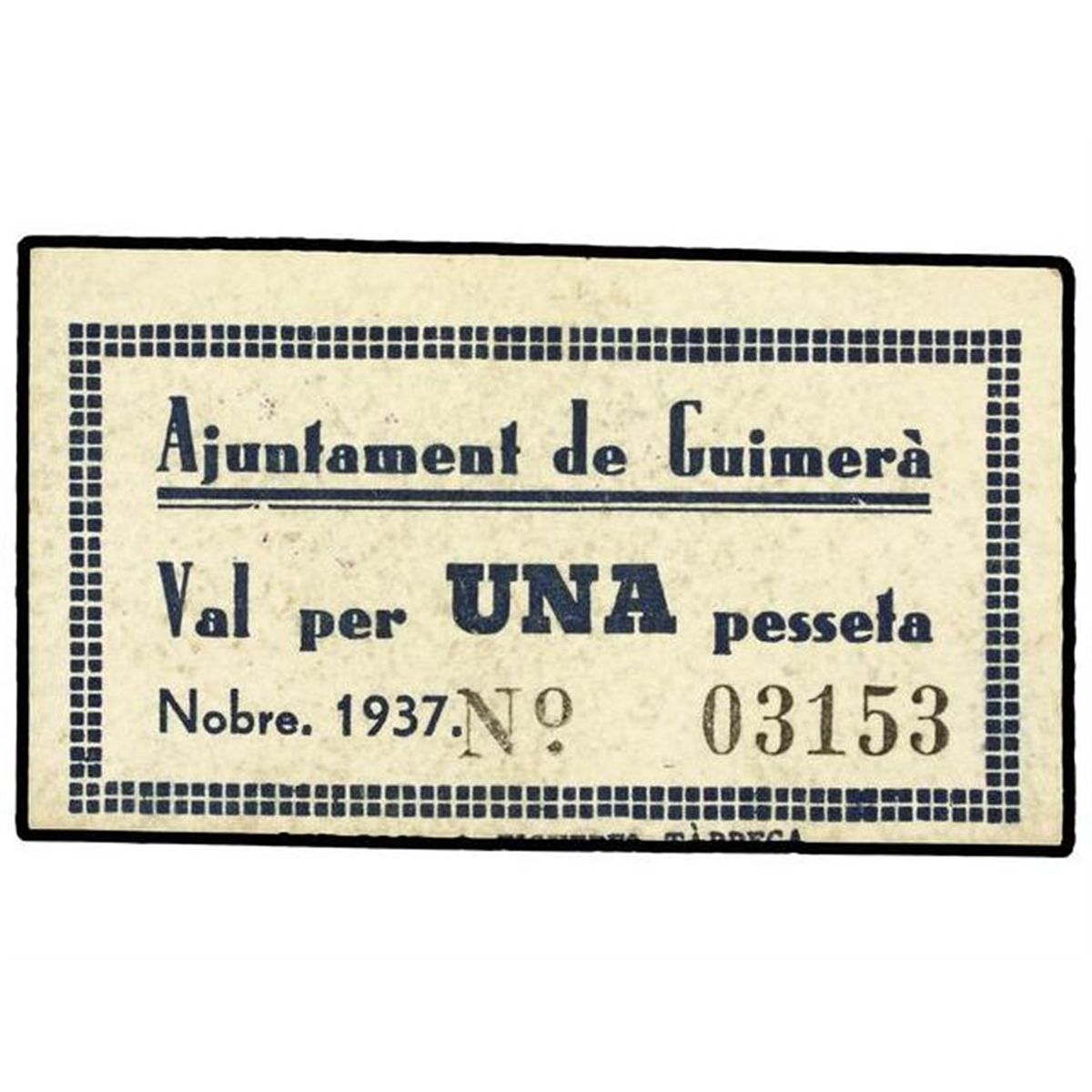 1 Pesseta. - Aj. de GUIMERA. - Cartón. Numeración en negro. RARO. AT- 1220a; T-1397. EBC-. - -