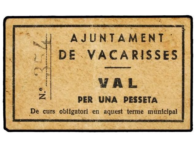 1 Pesseta. Aj. de VACARISSES. Cartón. ESCASO. AT-2626. EBC-.