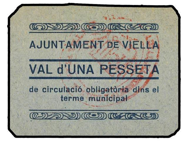 1 Pesseta. Aj. de VIELLA. Cartón. RARO. AT-2751; T-3172. SC.