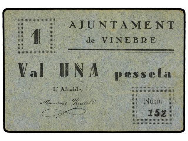 1 Pesseta. Aj. de VINEBRE. RARO. AT-2912; T-3376. EBC.