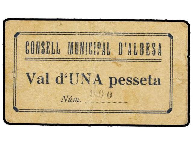 1 Pesseta. C.M. d´ALBESA. Cartón. ESCASO. AT-65; T-86. MBC.