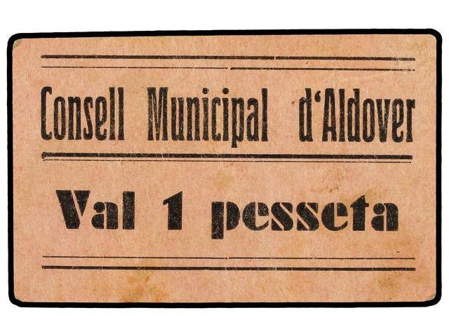 1 Pesseta. C.M. d´ALDOVER. Cartón. RARO. AT-88; T-112. EBC-.