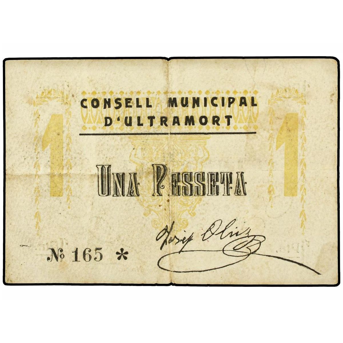 1 Pesseta. - C.M. d´ULTRAMORT. - (Leve rotura). MUY RARO. AT-2621; T-3040. MBC. - -