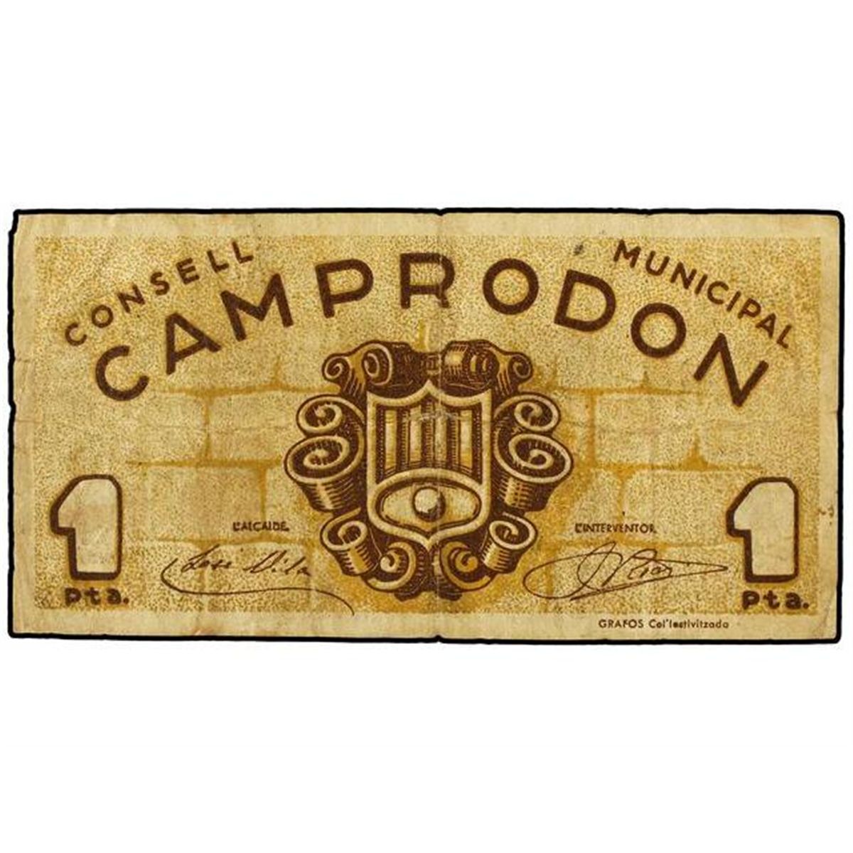 1 Pesseta. - C.M. de CAMPRODON. - Color marrón y amarillo oscuro. ESCASO. AT-632a; T-737a. MBC-. - -