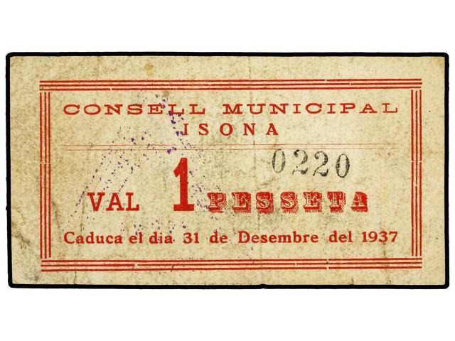 1 Pesseta. C.M. de ISONA. (Algo sucio). ESCASO. AT-1262; T-1457. MBC.