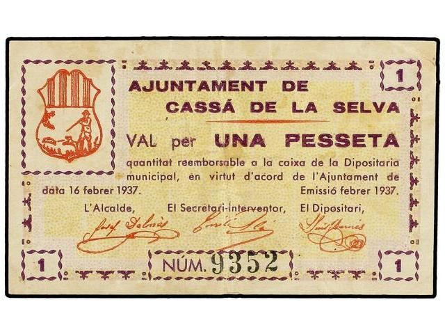 1 Pesseta. Febrer 1937. Aj. de CASSÀ DE LA SELVA. AT-687. EBC-.