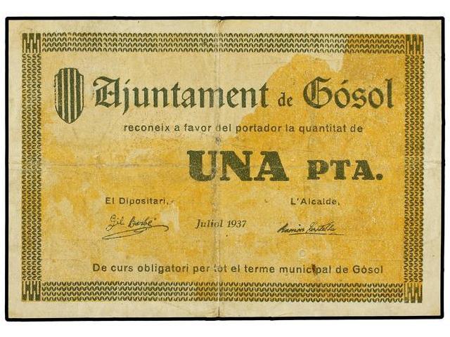 1 Pesseta. Juliol 1937. Aj. de GÓSOL. RARO. AT-1148; T-1326. MBC.