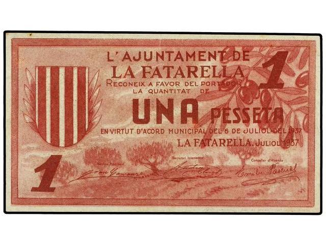 1 Pesseta. Juliol 1937. Aj. de LA FATARELLA. AT-997; T-1156. EBC.