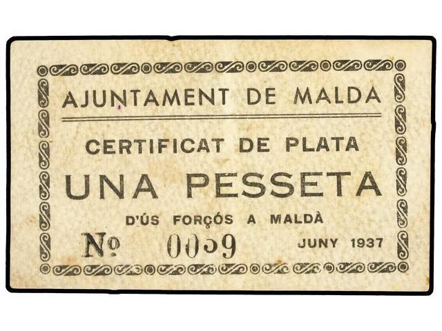 1 Pesseta. Juny 1937. Aj. de MALDÀ. (Algo sucio). MUY ESCASO. AT-1400; T-1598. MBC+.