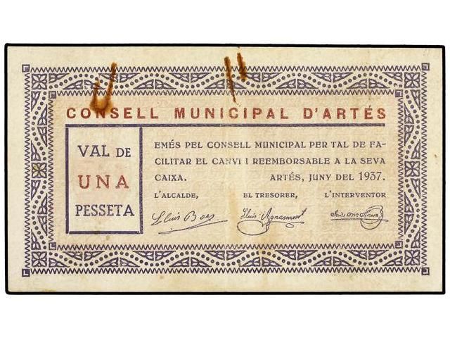 1 Pesseta. Juny 1937. C.M. d´ARTES. (Manchas de óxido). ESCASO. AT-217. EBC-.