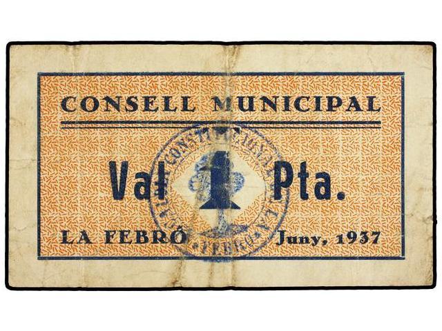1 Pesseta. Juny 1937. C.M. de LA FEBRÓ. RARO. AT-1001; T-1160. MBC.